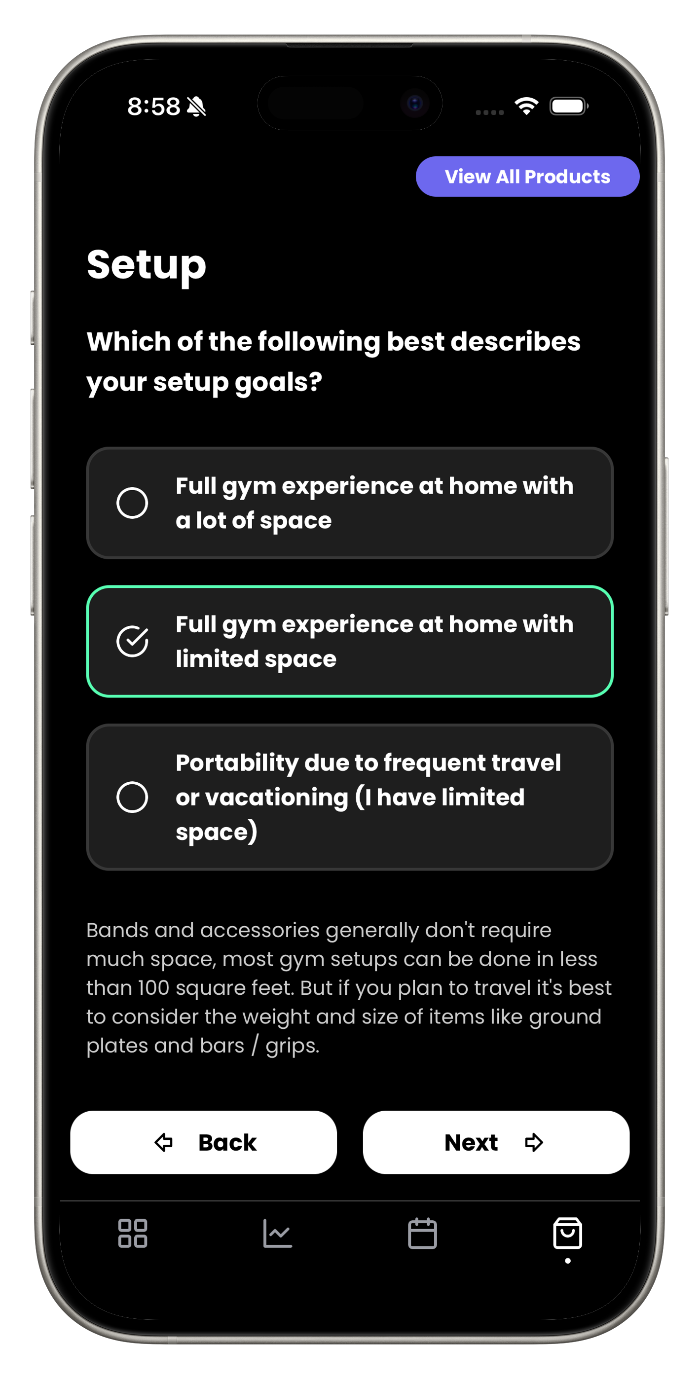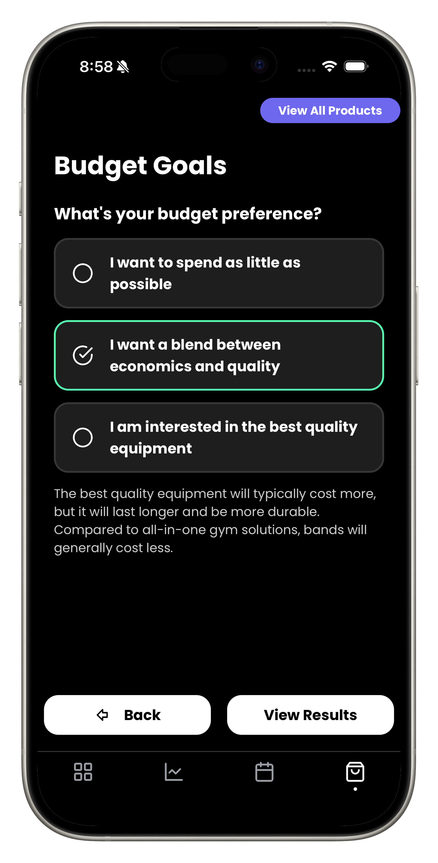 A future update will include the ability to analyze your existing bands and your workout habits to recommend products that help you maximize your space and budget. Stay tuned!