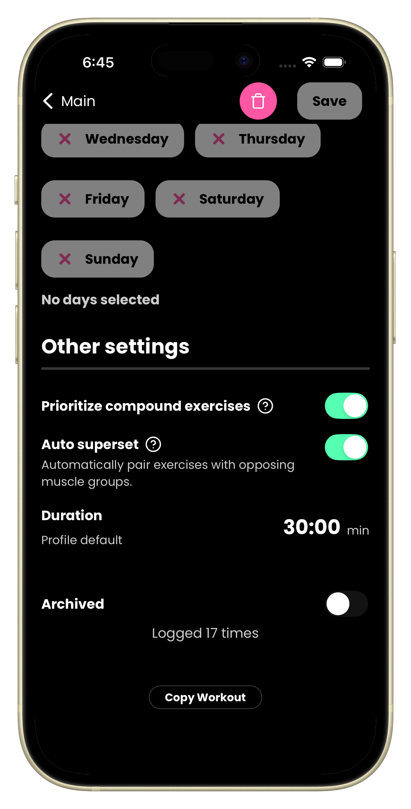 No more guessing which exercises to pair. No more wasted time. No more suboptimal workout design. Just enable Auto Superset and let the algorithm do the heavy lifting (pun intended).