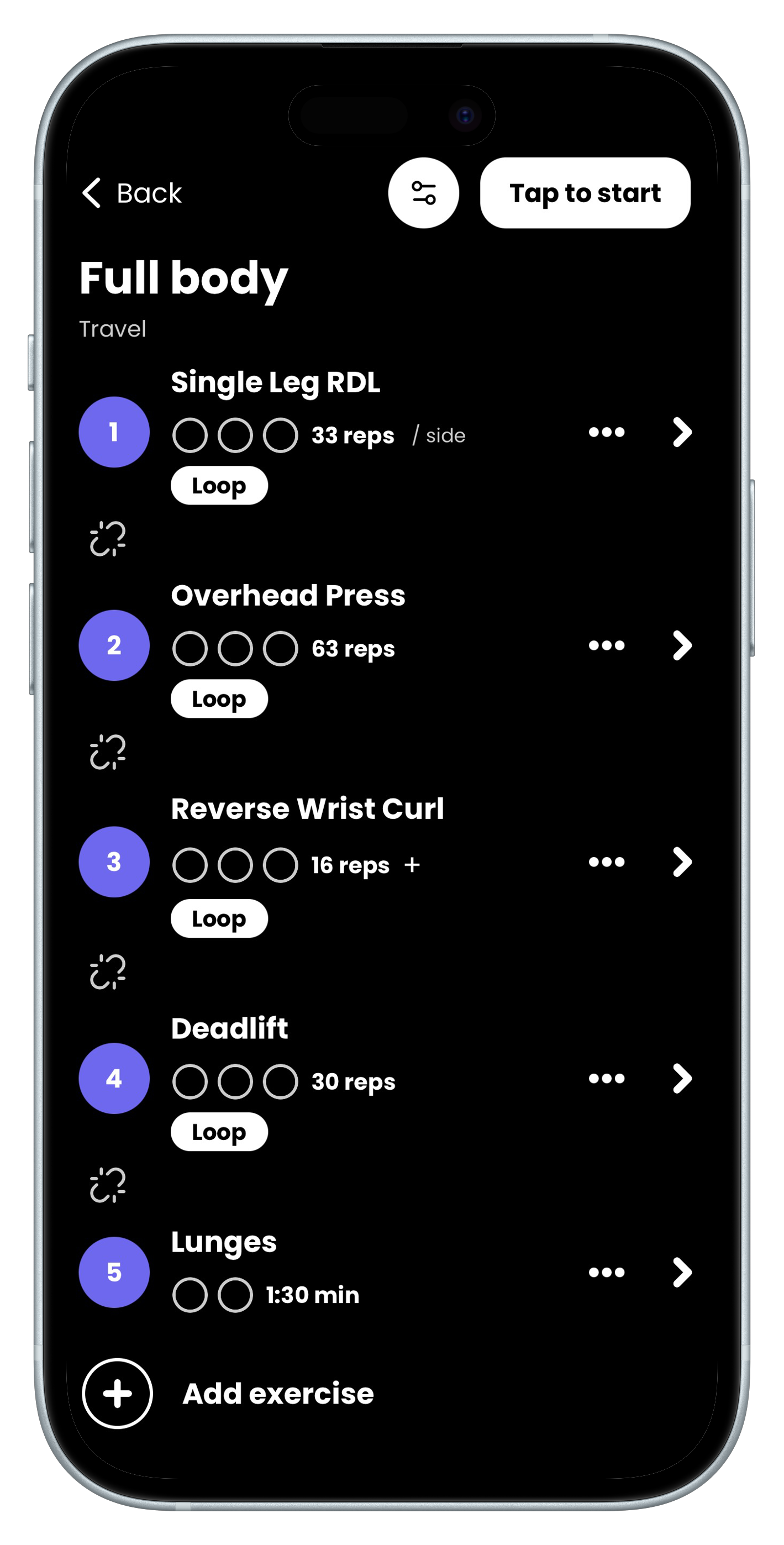 Create a custom travel profile in the Rubber Bands app to generate tailored workouts that maximize your limited setup, even if it means embracing higher reps for that burn.