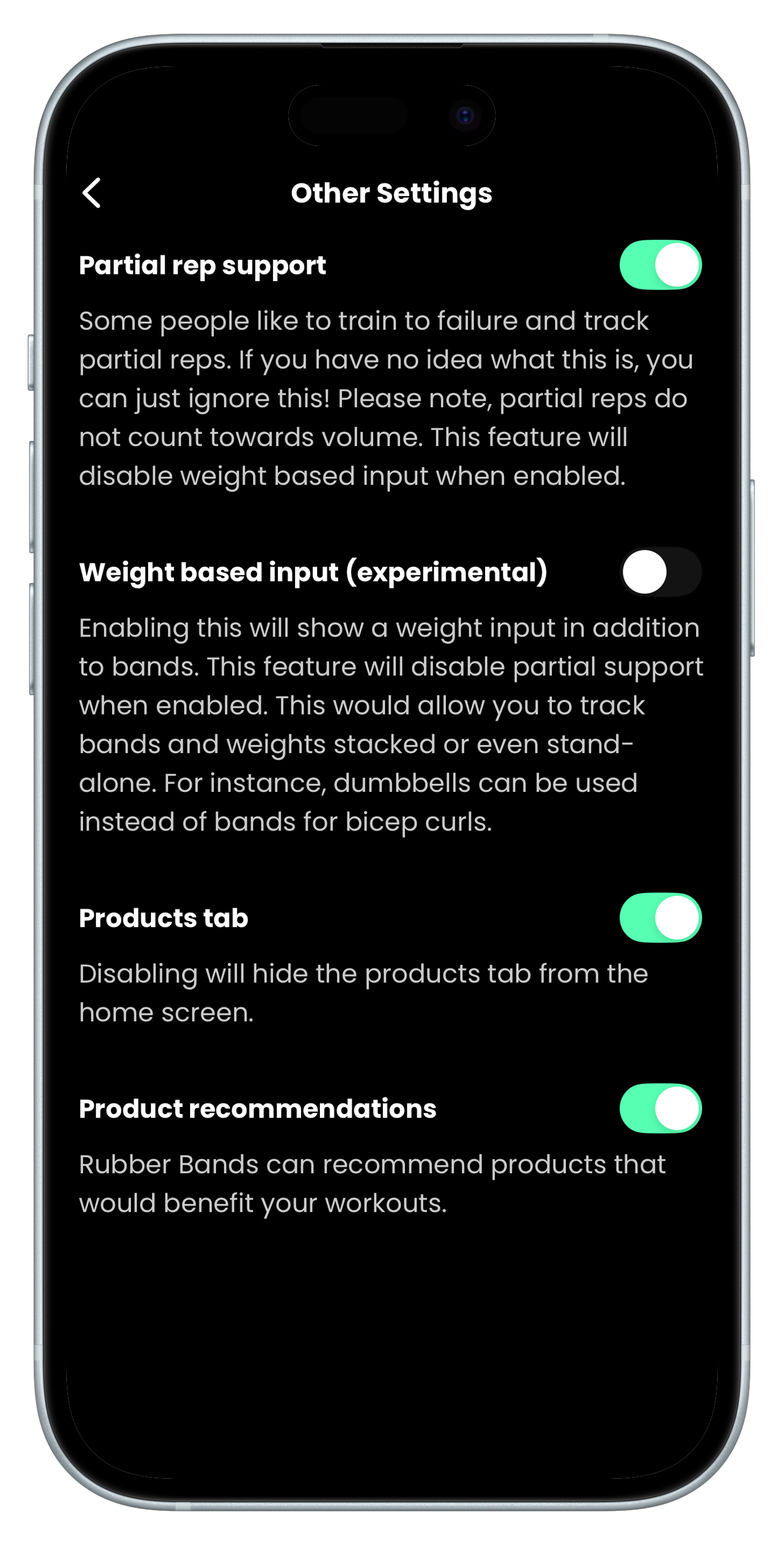 Rubber Bands supports partial reps out of the box when you enable it (in Other Settings). You will be presented with a new. This works best with Rep Schemes: "I'll Pick" Mode