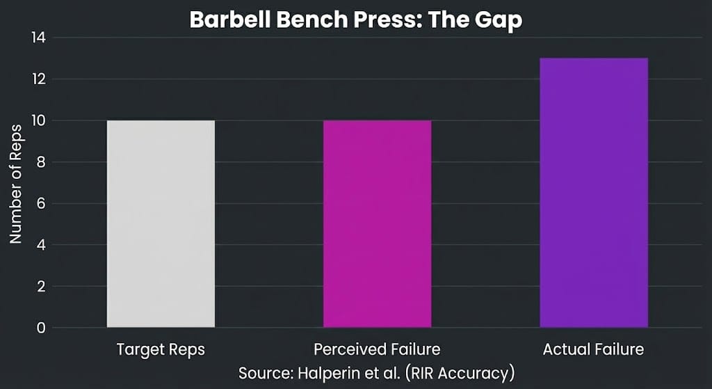 Trainees rarely reach true physiological failure with heavy iron due to the risk of injury (e.g., being pinned by a barbell). Consequently, sets often end with 2-3 repetitions in reserve (RIR), failing to maximize motor unit recruitment.